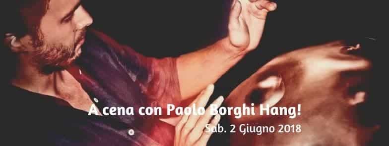 Dopo la cena ci sarà un’alternanza di momenti di improvvisazione con i suoni dell’Hang, finestre aperte all’interno dei brani di Paolo Borghi.